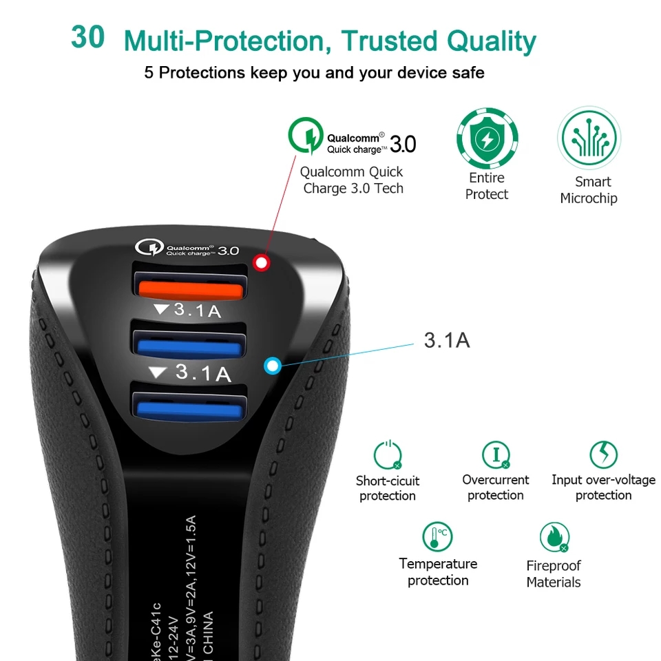 شاحن سيارة وكاله القوة القصوى يدعم خاصية الشحن السريع USB 3 3.0 Carregador